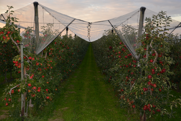 Die Hagelnetze werden im Frühling, nach der Apfelblüte geschlossen und nach der Ernte wieder über den Bäumen zusammengerollt. Während der Winterruhe sind leichte Hagelereignisse für unsere Bäume nicht so schlimm. Erst wenn sie anfangen zu blühen, können erhebliche Schäden entstehen. Die Honigbiene orientiert sich an der Sonne. Um eine erfolgreiche Befruchtung der Äpfel durch die Bienen zu gewährleisten, werden die Hagelnetze erst nach der Blüte geschlossen. Nun beginnen die Früchte zu wachsen und ab jetzt sind sie sehr anfällig gegenüber Hagel, sodass das Netz bis nach der Ernte geschlossen bleibt. Das Öffnen bzw. Schließen des Netzes dauert pro Hektar ungefähr einen Tag, sodass dies nicht kurz vor einem anstehenden Hagelereignis vorgenommen werden kann.