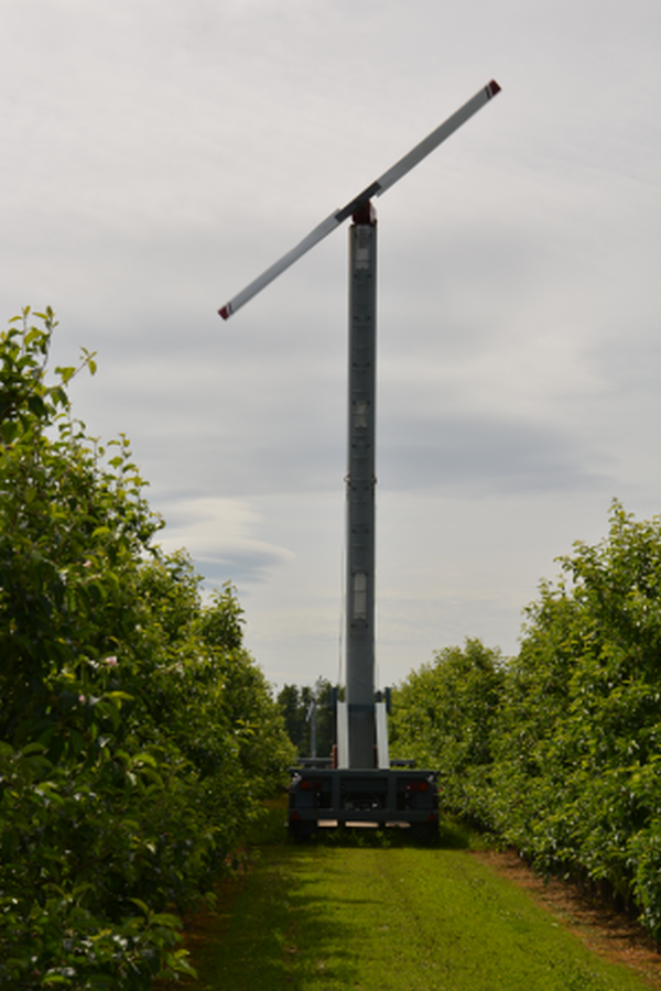 Windmaschinen schützen Apfelanlagen vor Blütenfrost