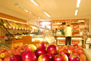frisches Obst und Gemüse aus biologisch-dynamischem Anbau, Eier von freilaufenden Hühnern, Käse aus der Hofkäserei von Haus Bollheim, Milch und Trockenprodukte, Vollwertbrot, Honig, schöne Dinge aus Naturmaterialien - Besonderheiten: